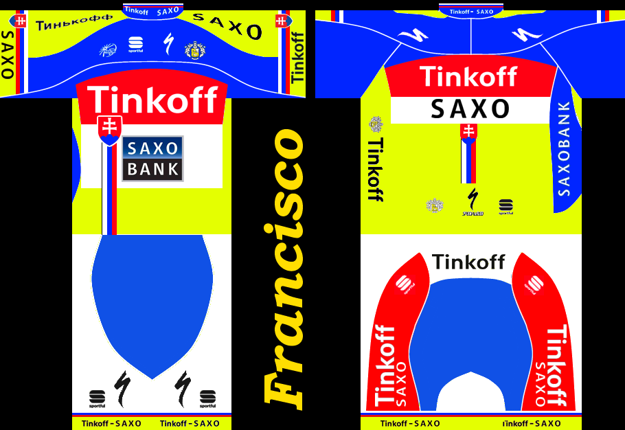 Here is the leader jersey for Tinkoff Saxo Vuelta. The upper part of the jersey its made by FCD and thanks to him. I made the lower part. I have no intention of reenvent the gunpowder again.