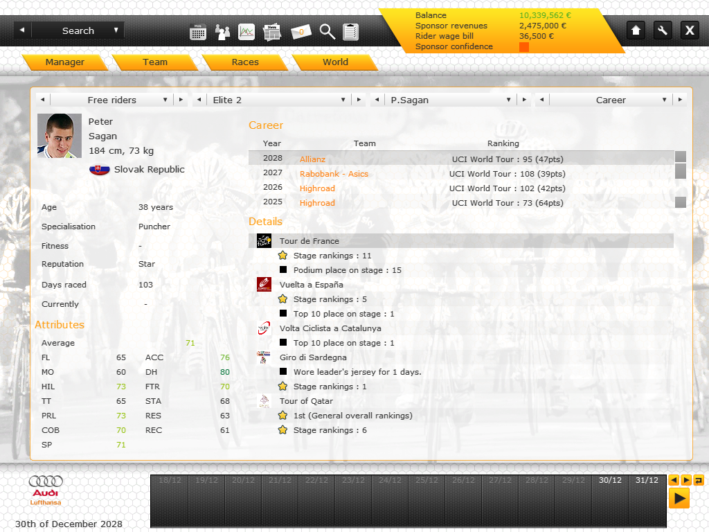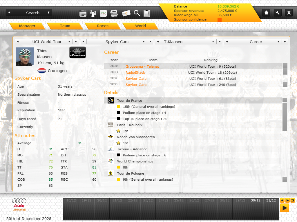 I think that it is so weird and interesting to watch the development of the cyclists from unknown countries in cycling today, and how much cycling nations today are slowly starting to fail in the game. Hope the game can handle going further and further into the future!