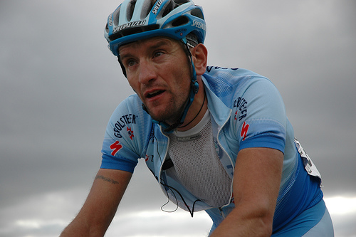 Both riders again. Even though you can't see their faces, their jerseys can make it easier. |