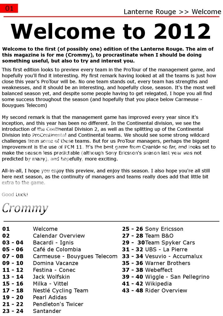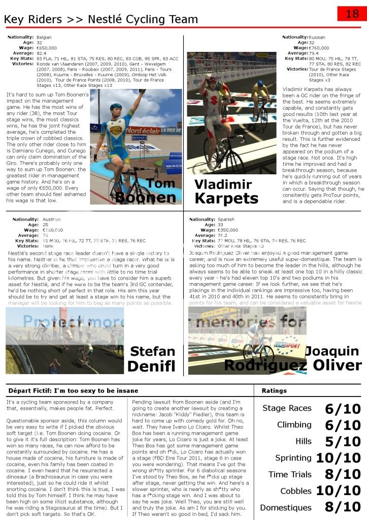 I've changed the layout slightly. Gone is the squad menu on page 2 of each team's preview, and in place of it is a return of the same guy who wrote last year's previews.
