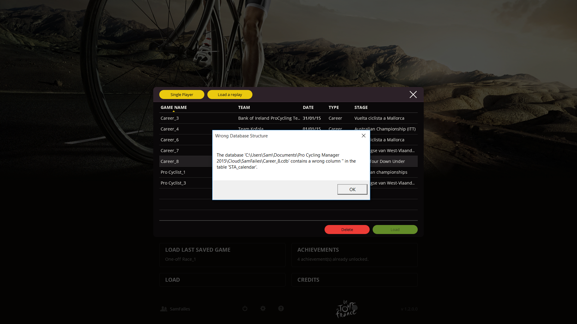 Whilst trying to load a saved game I get this message . Any idea what's going on and how to fix it?