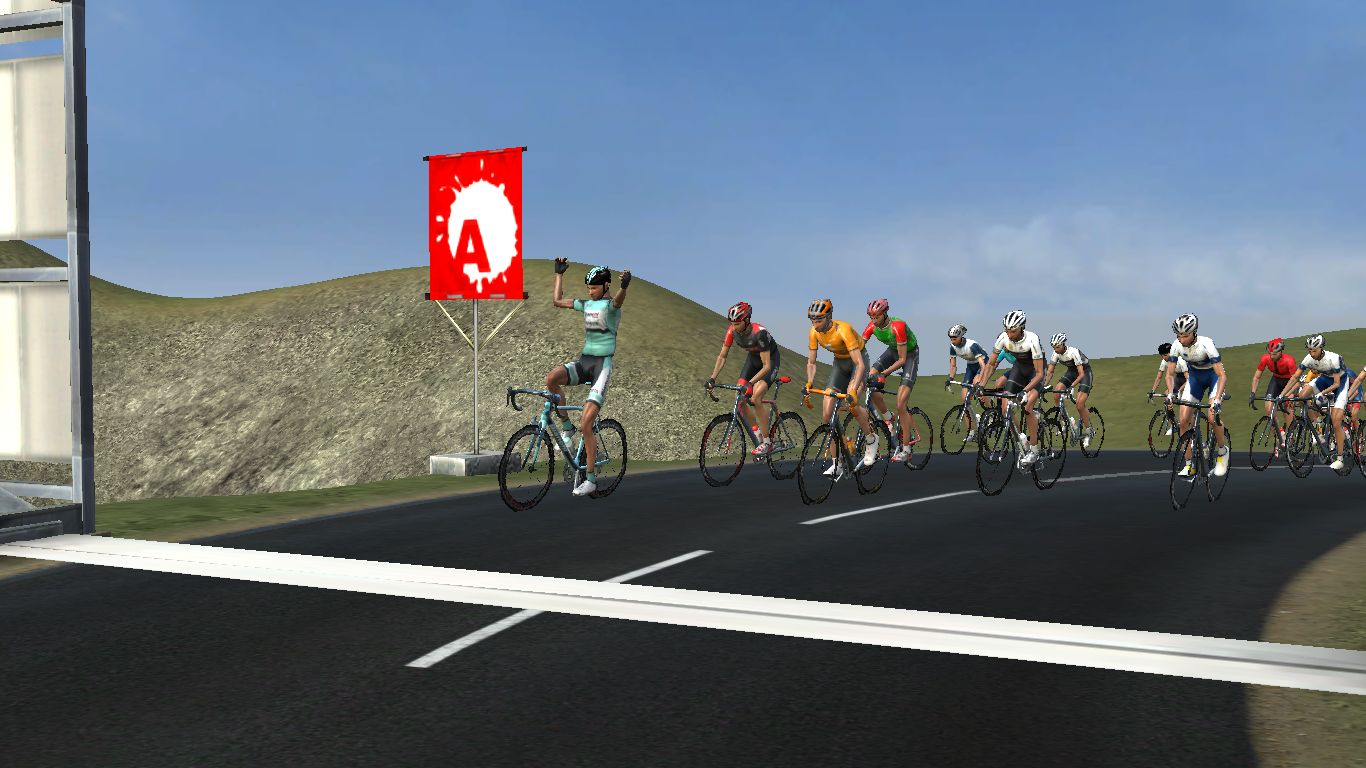 Valls increases the pace enough to put another 20 riders into difficulty, including Signorini and Manfredi. Pinot, Elissonde and Nibali look like his main competition for the stage as we reach 500m to go.