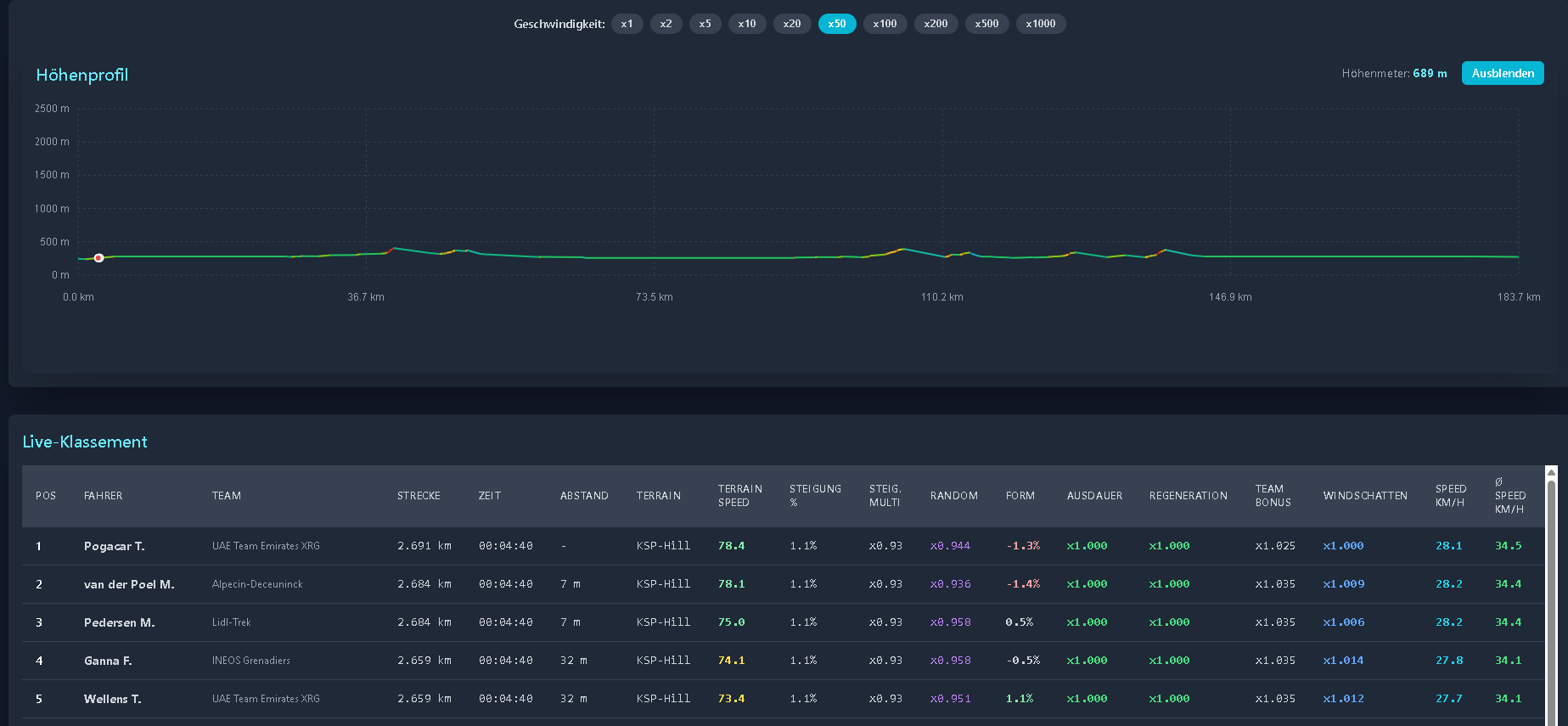 2. Stage Ranking: There are 9 Categories Flat -> Rolling -> Hill -> Hill Difficult -> Medium Mountain -> Mountain -> High Mountain / Cobbles - Cobbles - Hill each stage gets its score based on the profile. Hills, Mountains, Medium Mountains at the end of a stage getting higher scores. Steeper climbs get higher scores, longer climbs get higher scores and high mountain climbs get higher scors bases on ther elevation. All stages in the race get ranked in a certain Menu