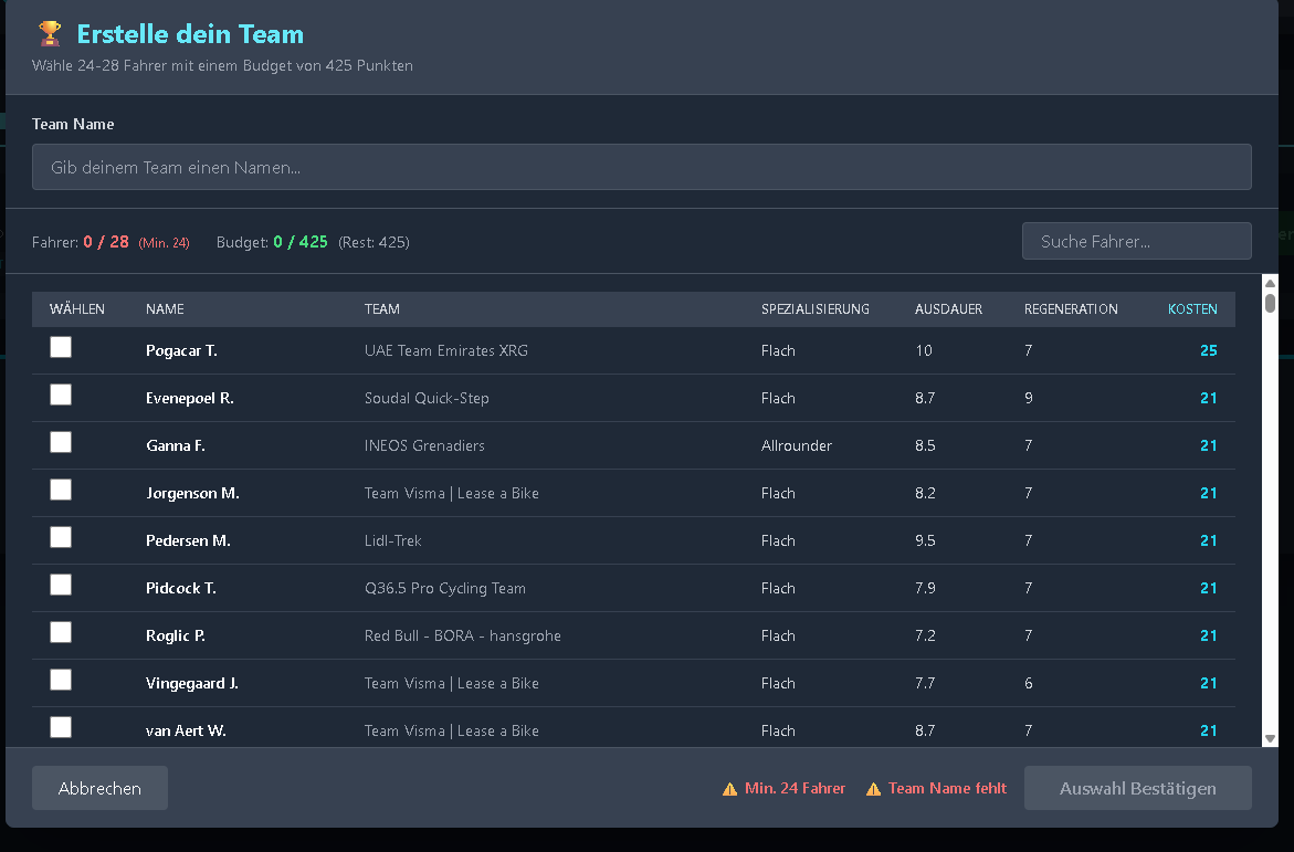 You canjust watch the simulation, or create your own team out of existing riders with a budget to buy riders. And select the squad for each race. The palyer will always start in world tour atm.