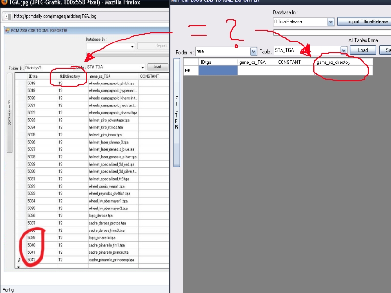 Hello everyone, i tried to create new equipment for pcm 10 and i heard that this is also possible with the Full Editor v4 so i first of all tried to find some informations who could help me by adding the equipment i found the following link:https://www.pcmdaily.com/forum/viewthr...rowstart=0 i found it was very usefull so i began to programm but then i realized that step 5 is diffrent in my editor concerned the STA_TGA with the second column named "fkIDdirectory" (<u>https://pcmdaily.com/images/article...GA.jpg) which is other named in my editor . It is named with "gene_directory_sz". Does that mean the same thing or not?? Should i put a number 12 (stay for new equipment) in this column or does that mean something else? Can somebody please help me ?