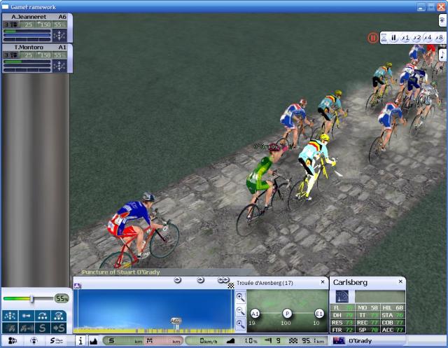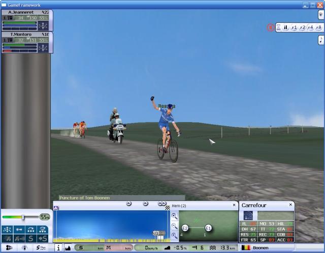 The break has now been caught. Carrefour is setting a really hard pace, and Nuyens from the Domina-team has just punctured. If he gets too far behind it may be difficult for him to get back up. |