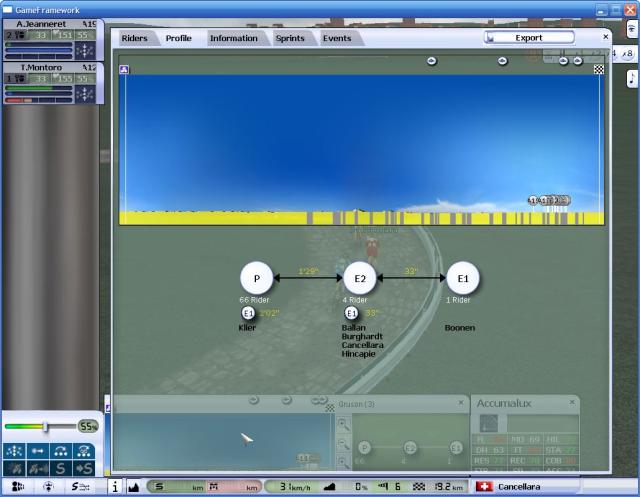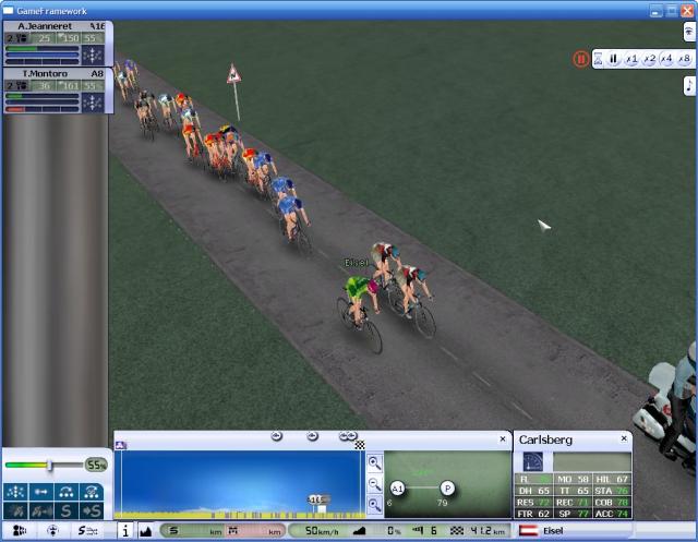 With 100 km to go Carrefour has still not managed to eliminate that many riders. There are 93 riders left in the peloton, and I suppose that Carrefour has used up a lot of energy on their continious attempts on splitting the front group. |