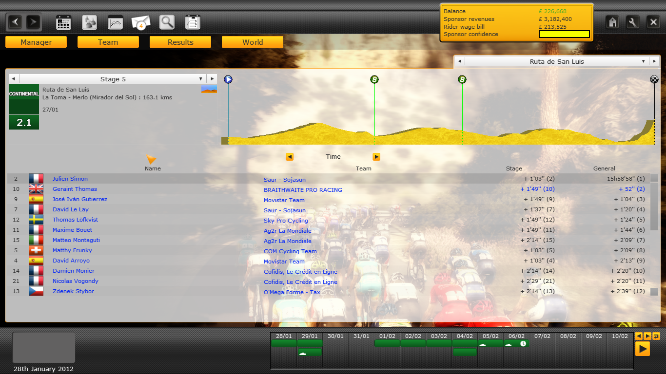 Stage 3 however comes our first main challenge.... 1 mountain followed by a slight hill finish, i decided to concede the stage and focus on getting thomas as close to the front as possibe. His main rival for the GC Julien Simon wins the stage with Thomas in a decent 8th losing 31 seconds