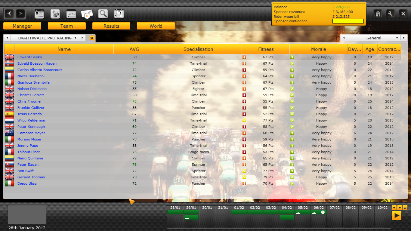 we are currently over 4 minutes down in the team standings due to a crash in stage 5 where my 3rd rider Meyer crashed out and i'd foolishly given my other 3 riders a slow ride to preserve energy for futher races, i wont make that mistake again!! |