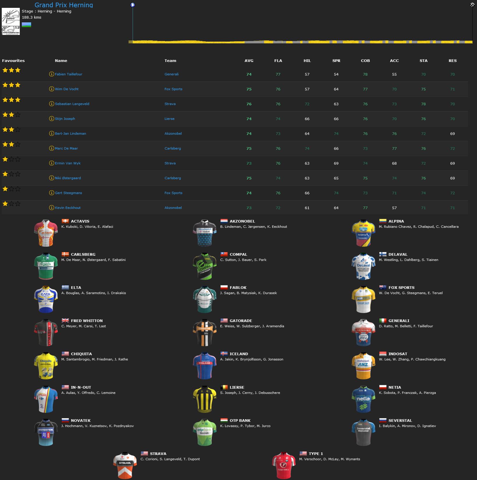 Great work Oleg, this helps to get an early picture of how the peloton will look like - very well in my opinion!
