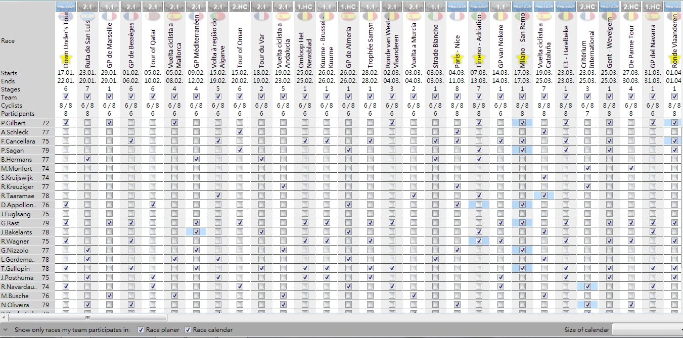 Also, I hate the races that are in the same time and I need to send different riders(eg. P-N, T-A / Dauphine - TdSuisse).