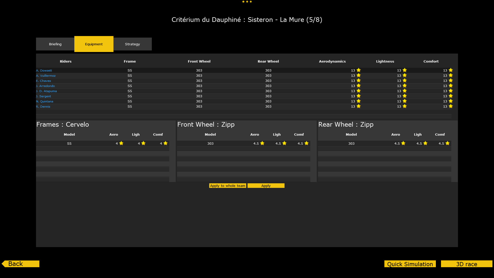 Anyhow, when i start my career, in the first few weeks, the EQ research starts, and you either have the direct partnership with the EQ-brand and can controle what u want to research for or you just get a random eq-brand to drive with and have no influence. In this career, i wasnt part of the research team. But my frame partner is: Giant, wheel: Bontrager and Groupset: Sram.