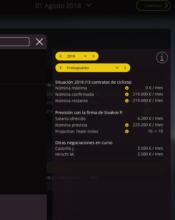 Explaination of the Problem/Bug: Maxium salary for next year in 1 of August are 0€ and I can't transfer or renewal riders because I don't have enough money