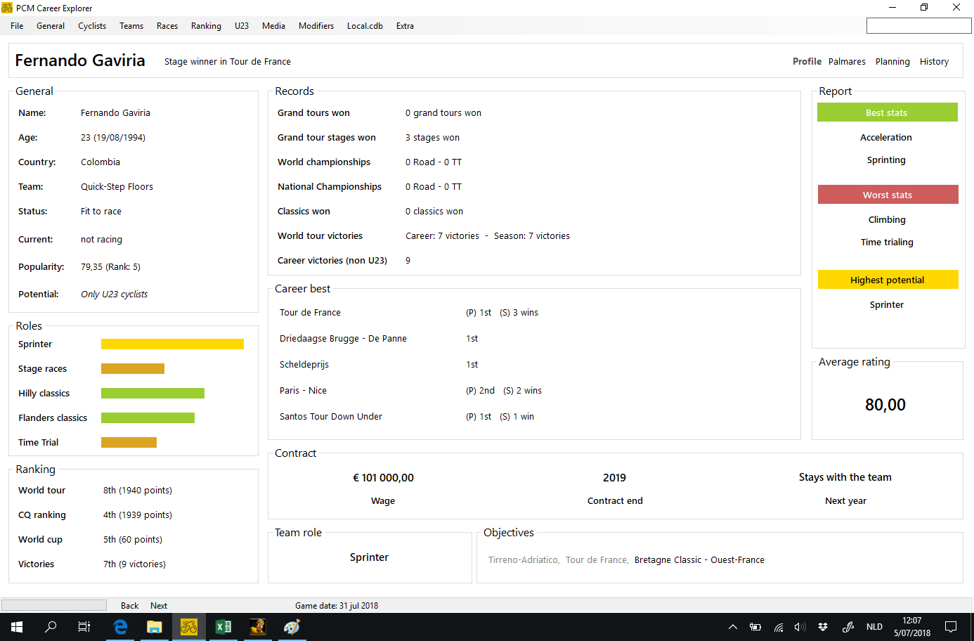 - you can click on a lot of text, they are actually links. (team names, cyclist names, race names, header in cyclist screen, ranking - like 5th in world tour will take you to world tour ranking-, .. and right click on names in a grid view will most likely give you a popup that takes you to a linked screen