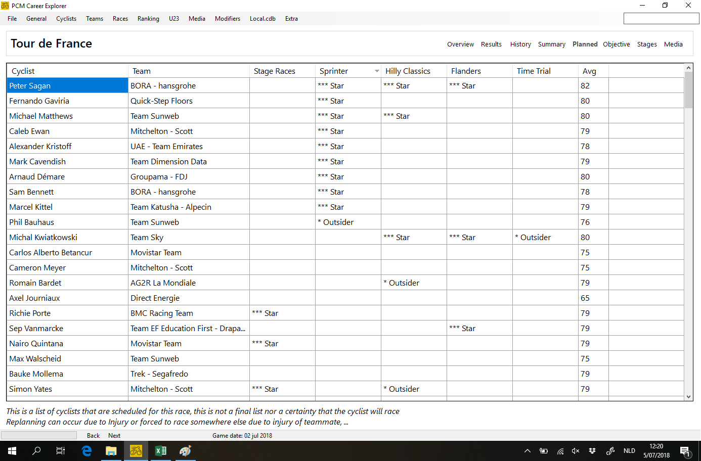 There's a lot on the todo list left (configure per cyclist the max days you want them to have, re-plan automatically when a cyclist is injured for some time, ...) but it's a good start and saves you a lot of work already.