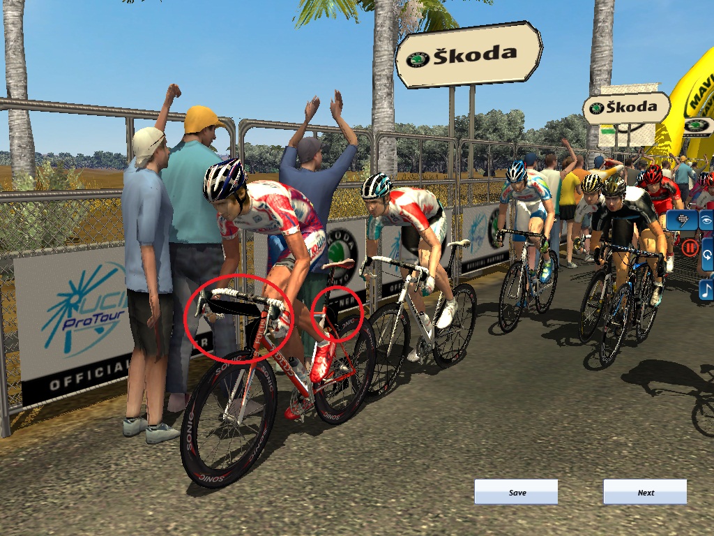 Still, there's something wrong with the Katusha bikes (new thing, just saw it today), probably missing nif (or something like that) files. There are some black things on the bike (see attached pic).