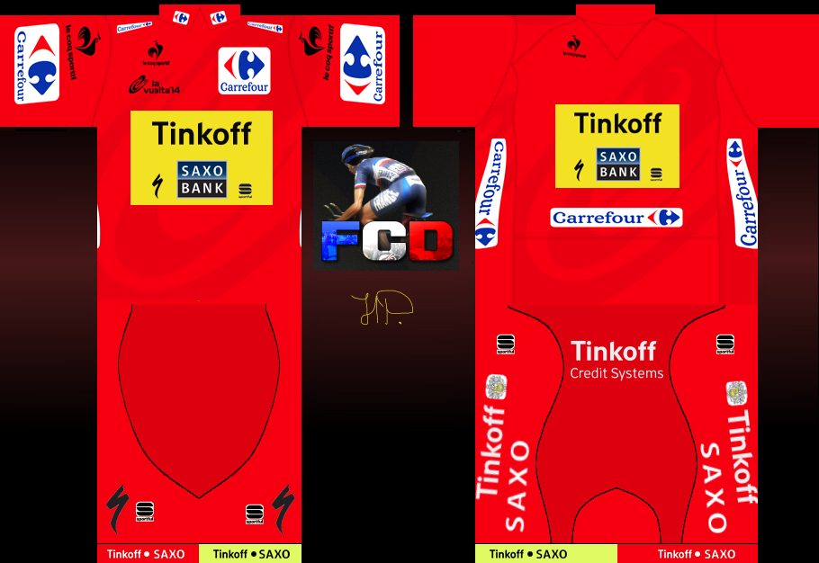 Here is the leader jersey for Tinkoff Saxo Vuelta. The upper part of the jersey its made by FCD and thanks to him. I made the lower part. I have no intention of reenvent the gunpowder again.