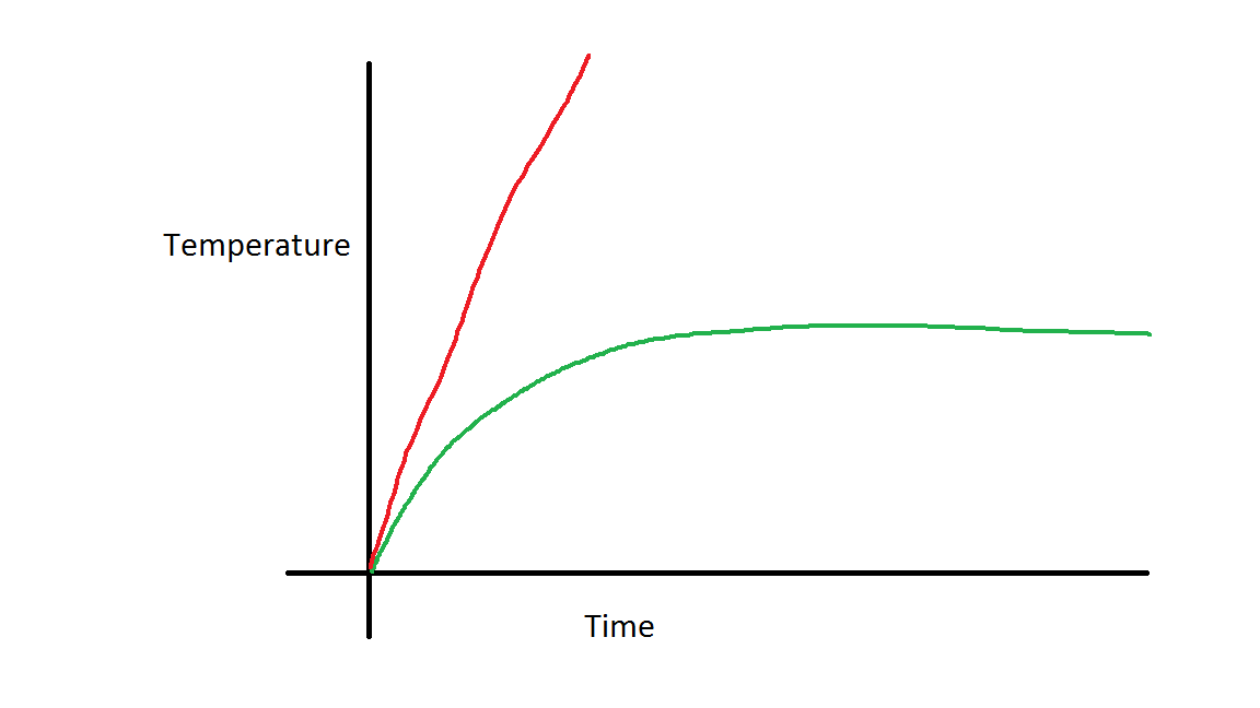 Basically, when you run, your body temperature initially goes up, then plateaus at a safe level as your body's cooling mechanism kicks in.
