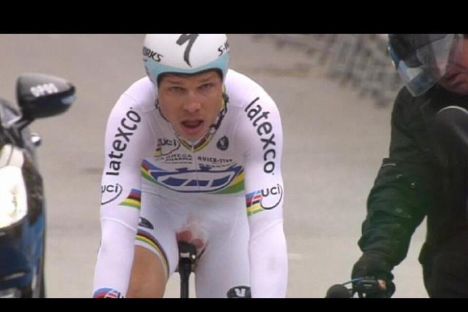 Tony Martin will not only use sandpaper on his saddle today, but also on his handlebars for better grip. #dedication