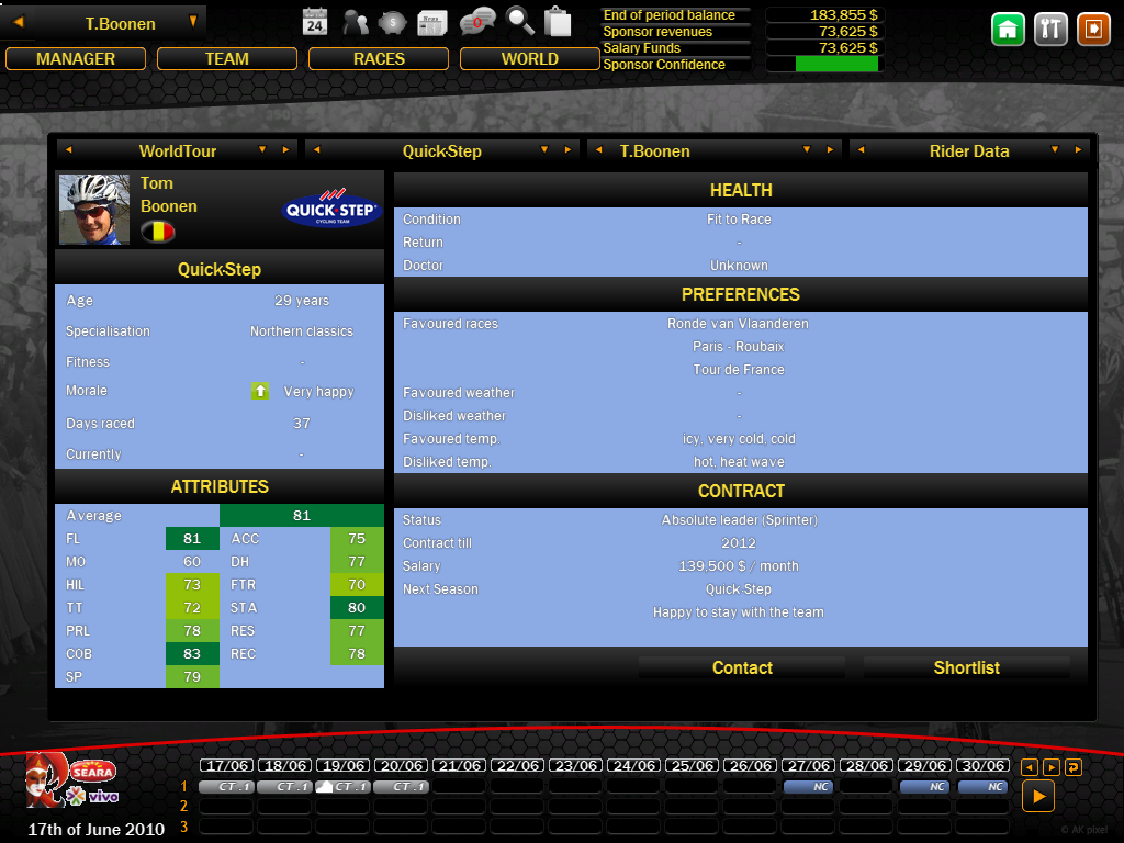 Cool, is that possible. If it is you'll have about 3 or 4 stories going on PCM11. And on the subject of your 2010 story, I think you should consider pulling out of a lot of races because your riders will all be knackered soon and you need to save them for the tour of Britain. |