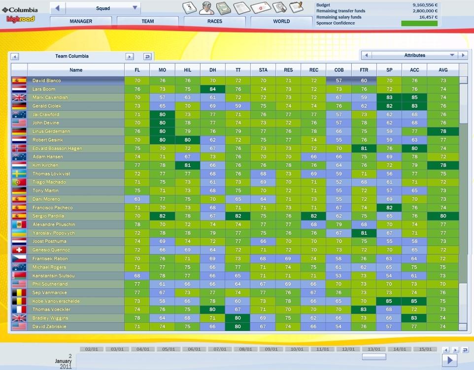 My TdF squad is pretty strong, in both Mountain and TT categories, so we should have a good chance with the overall and KOM jerseys, and with Cavendish, EBH and Wiggins as the sprint train we should win stages as well.