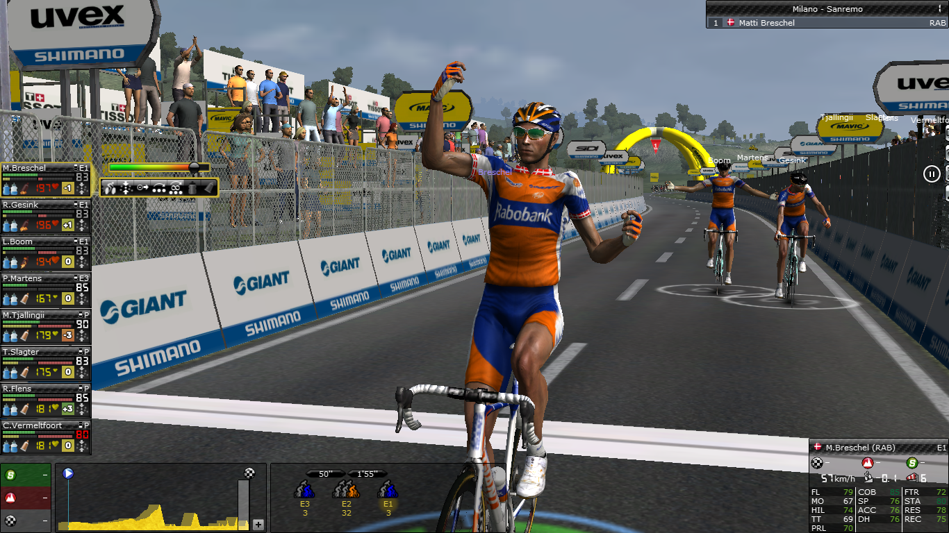 EPObank does the triple at Milan - San Remo (2014, 3rd season) on hard. Breschel, Boom & Gesink.
