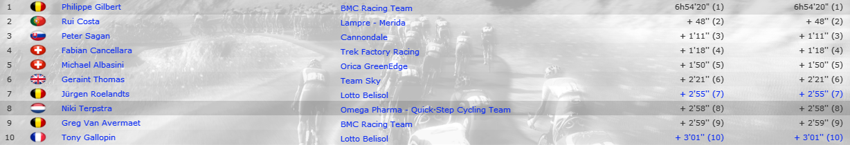 Strange Milan-Sanremo with Lotto. Gilbert won, and Roelandts got 7th, leading home the peloton.