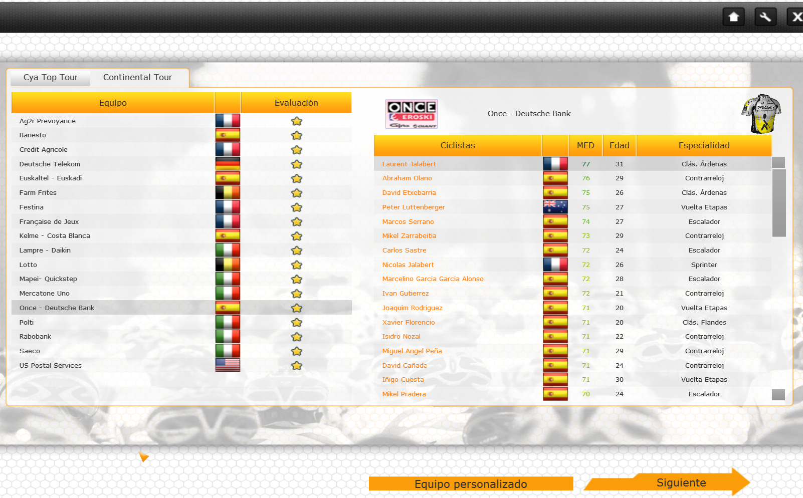 Well now i created the team gerolsteiner...but i think that´s not the problem to play in carrer mode..is other problem..Someone know why in the star team only appear one for every team?and how can i solutioned this..and other question is that when i play in the mode race..for example the tour de france ..,only one team(generally appear banesto) is for to play..only one..how can i put allt he rest..in what part of lachi editor should do that?