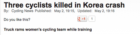 Irony.... Three cyclists killed in Korea crash ; /