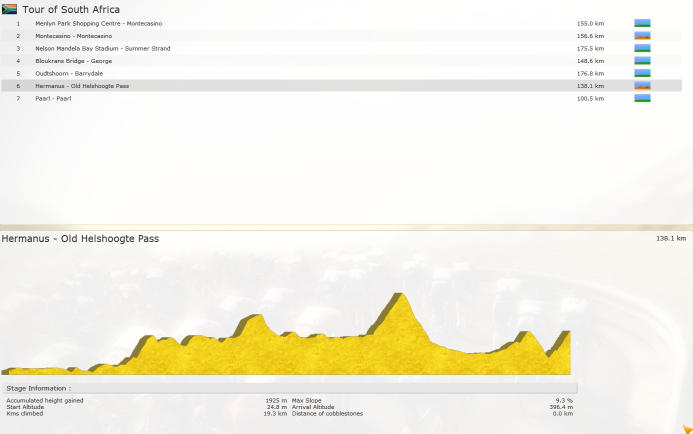 That's really cool! I'll buy the game just because of all the smaller races Please share some screenshots of the Tour of South Africa! |