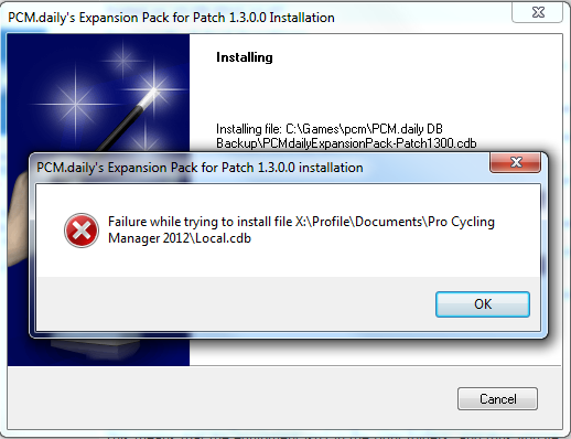 Now i have also tried C:\Users\Lars\Documents\Pro Cycling Manager 2012\Mod\Database\ but it still doesnt work. Can someone help me with my problem. Is it something i havent installed yet? |