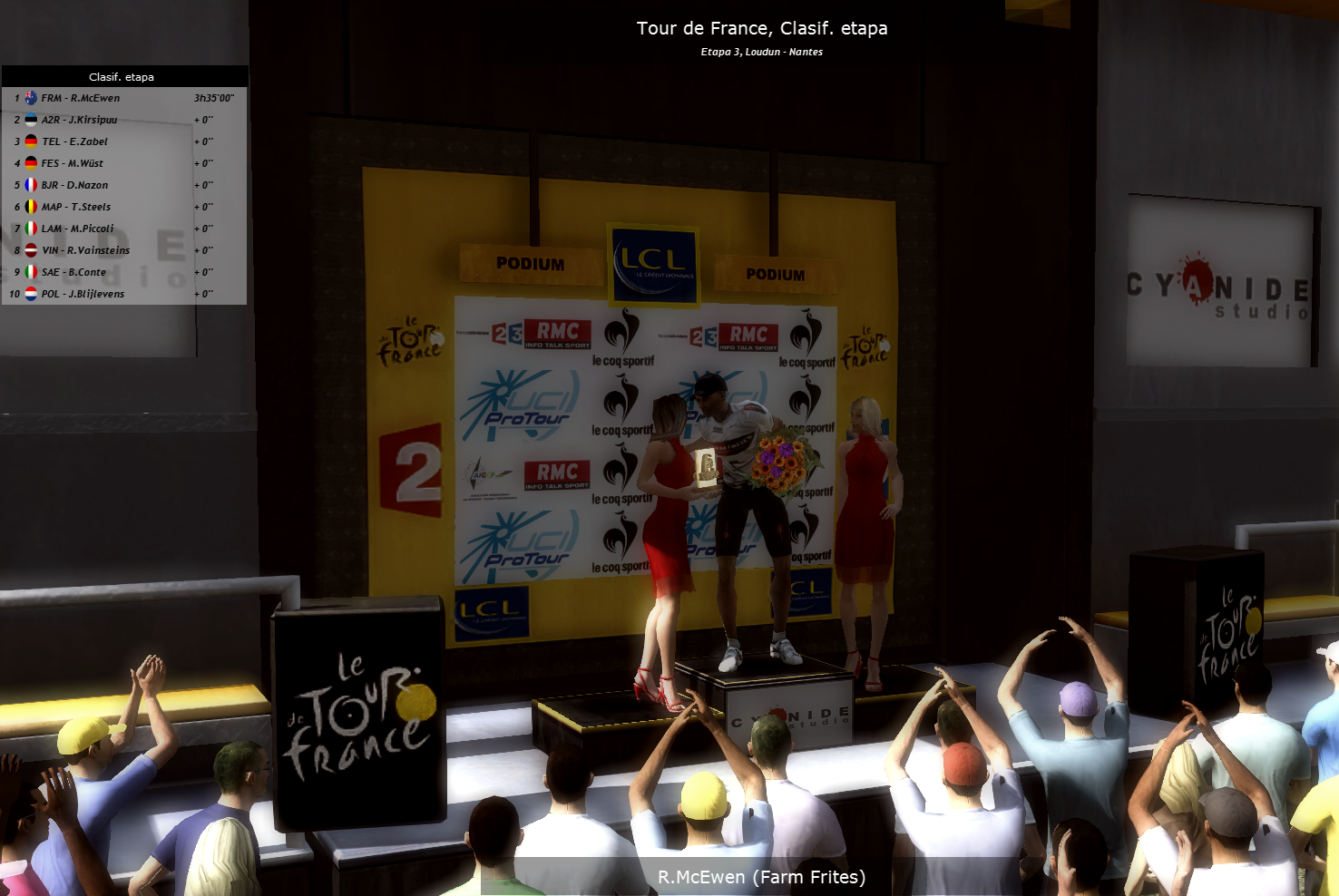 And yes it was.. McEwen won the stage with clear authority and now he has the green jersey..But everybody expected the stage of Tomorrow . All the favourites will have a hard stage in the Team Time Trial between Nantes and St Nazaire.