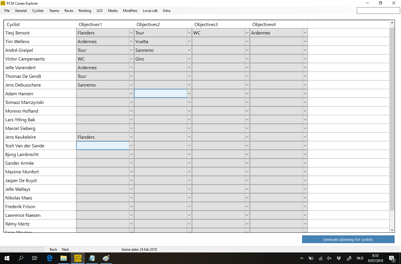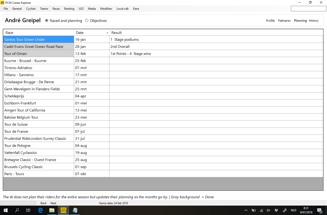 in the meanwhile the tool is updated with a lot of user interface improvements, a lot of fixes, a lot of new screens and a couple of brand new features (auto schedule cyclists of your team, reschedule race planning for all teams to have realistic number of racing days for world tour/PCT and continental, Automated actions for those who use pcmce a lot)