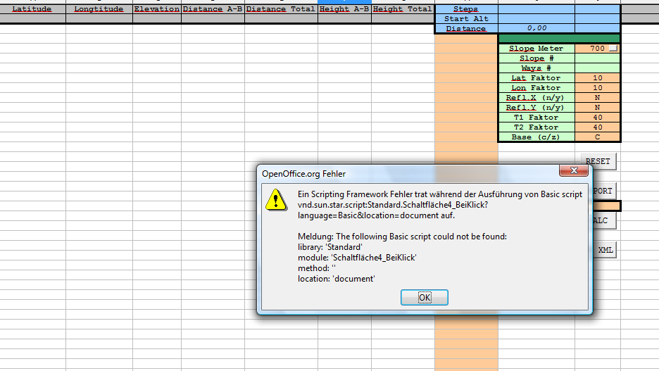 Didnt know if Open Office Excel handle scripts like MS Excel. Maybe its only a problem abou the german 'Ä' in the code. I remove it with next version to an normal 'A'. |