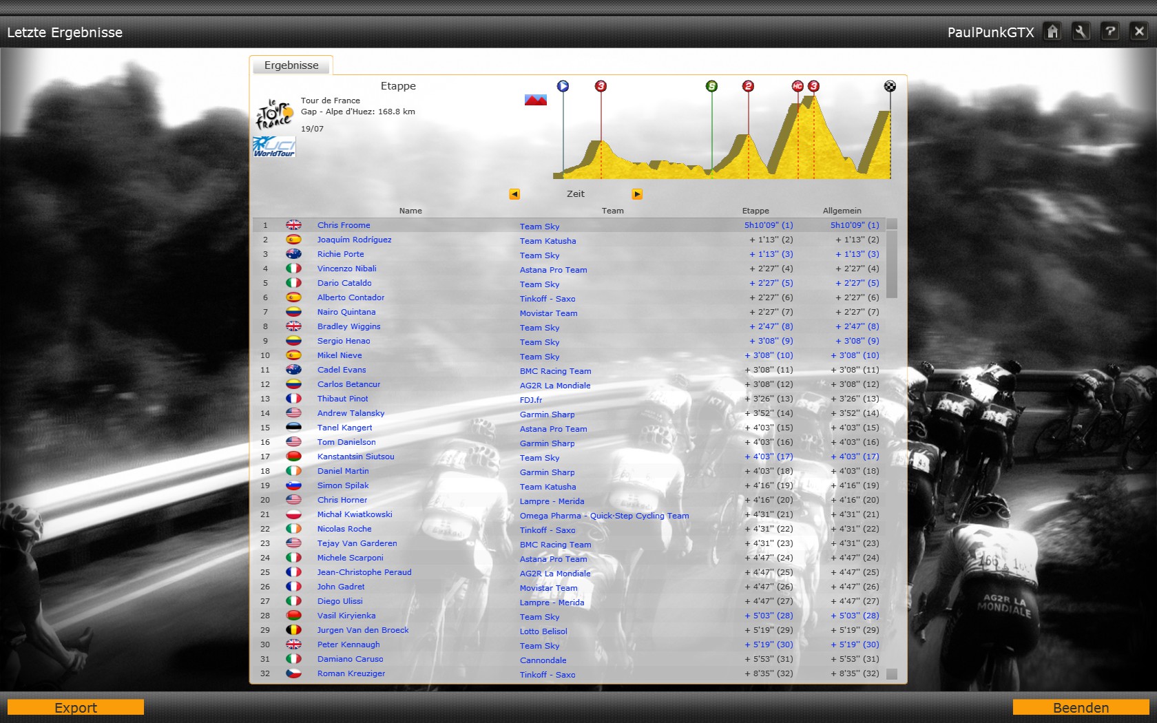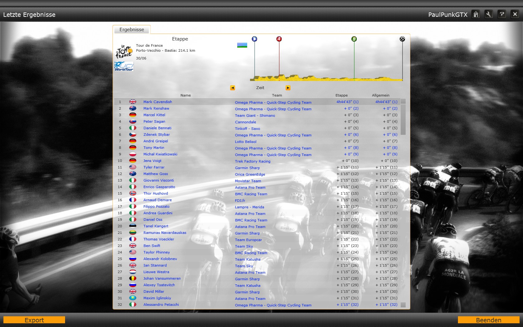 | Rank | Name | Team | Time | Player | | 1 | Lieuwe Westra | Astana Pro Team | 1h07'03 | SSJ2Luigi | | 2 | Fredrik Kessiakoff | Astana Pro Team | + 5 | SSJ2Luigi | | 3 | Rohan Dennis | Garmin Sharp | + 12 | | | 4 | Jérémy Roy | FDJ.fr | + 14 | | | 5 | Anthony Roux | FDJ.fr | + 26 | | | 6 | Arnaud Gérard | Bretagne - Séché Environnement | + 41 | | | 7 | Maarten Tjallingii | Belkin-Pro Cycling Team | + 43 | | | 8 | Vincenzo Nibali | Astana Pro Team | + 47 | SSJ2Luigi | | 9 | David Millar | Garmin Sharp | + 52 | | | 10 | Cyril Lemoine | Cofidis, Solutions Crédits | + 53 | |