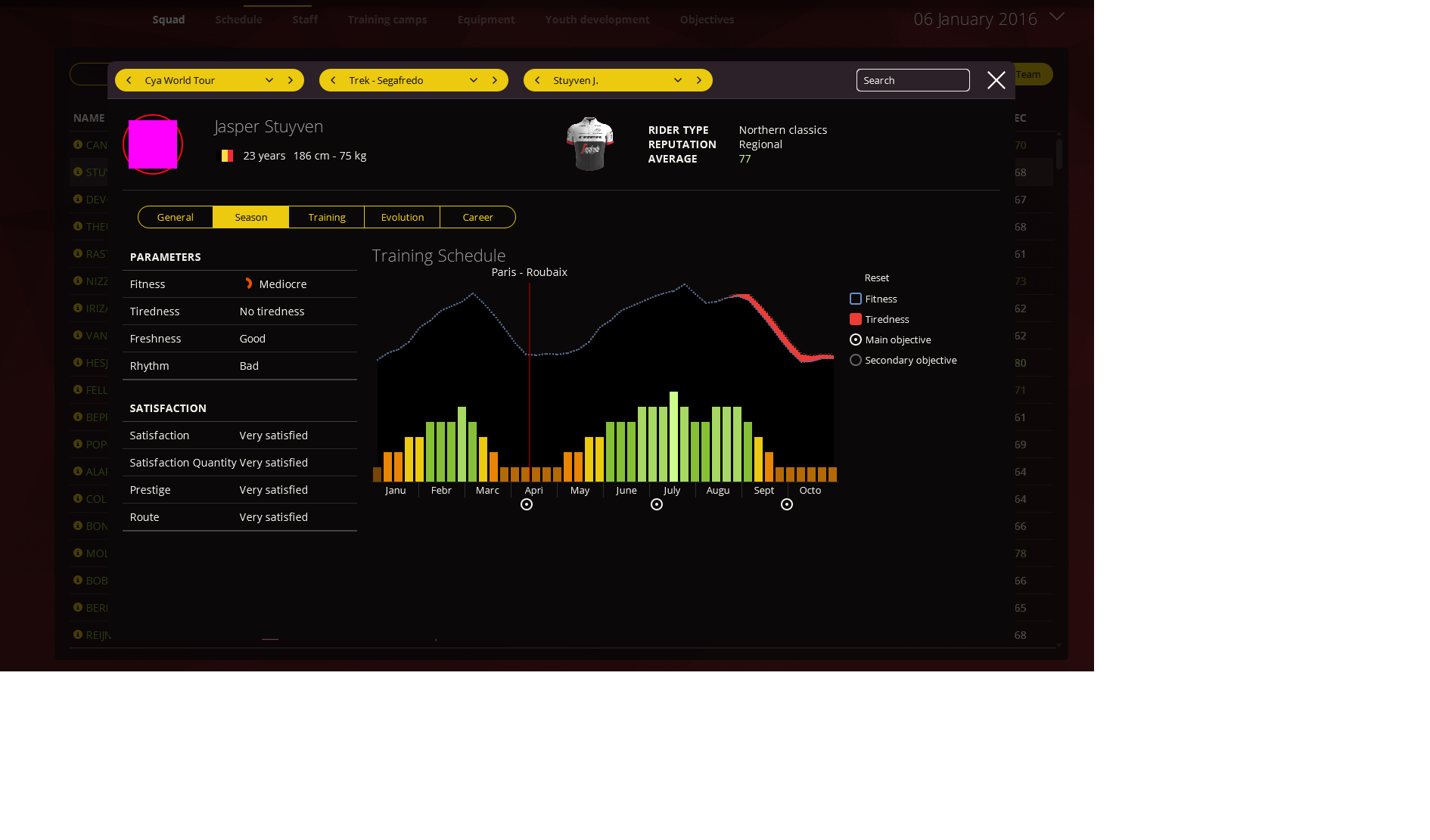 first stage done and i loved it the new HUD is great and i like that you can now mark out the top 10 of each jersey depending on your goals will not start a career or pro mode until there is a real name DB