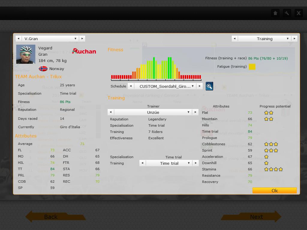 Alternatively, you can train as Climber to get around 70 MO, which would make him more useful in stage races with a TTT like the Giro. |
