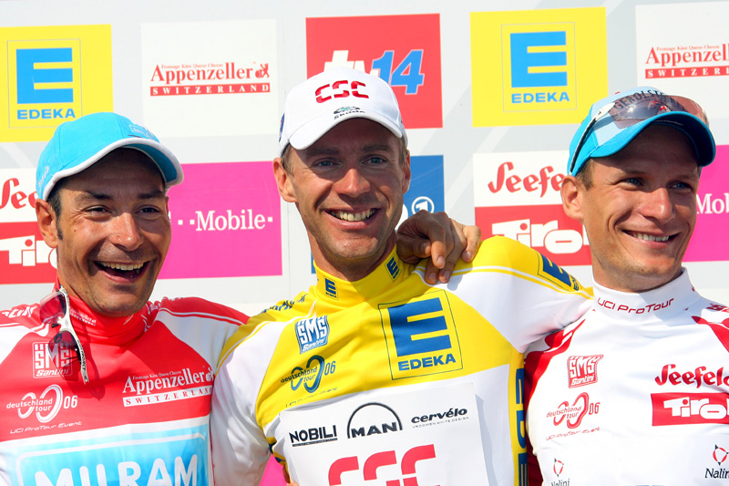 Erik Zabel, Jens Voigt smiling With their deutschland tour jerseys in 2006