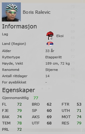 I'll give you a pretty comprehensive update on stats, riders, etc. since I have to take a small break while I try to find a solution to my editor-problems.