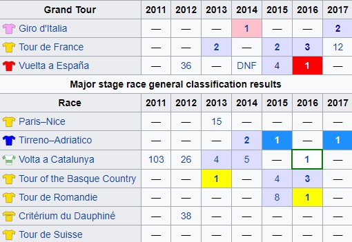 A rider who wins Tour and Vuelta that year, should be a whole lot better than all the others, especially on TT! 1 more than Porte, 2 more then Contador, Nibali etc is totally laughing, he smashes them every time on TT.