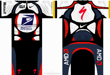 So when I was trying to decide what kind of jersey to make for my first time, I realized I should just make the coolest jersey I've ever seen! So I made the 2000 postal jerseys. I attached the file. I used paint.net. I changed some of the sponsors. Some of the new sponsers were on postal in later years, and I don't particularly like trek. I also added the classic yellow left arm band that lance's team always rides with. if you want to know what the 2000 postal jerseys look like heres a reference -