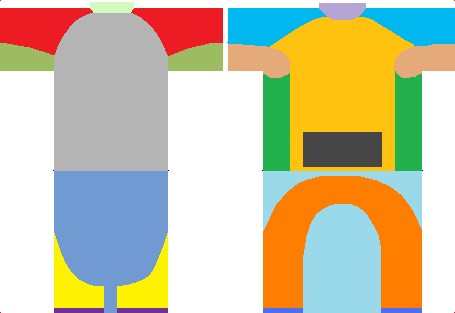 The real jersey file is only what you see in the template/plis (the white jersey with all the wrinkles). The grey part in the left of the template is the front of the jersey, the blue and yellow below are the front of the shorts. The yellow part on the right is the back of the shirt, while the light blue and orange, the back of the shorts. There are also the sleeves, and the green parts which are the sides of the jersey.