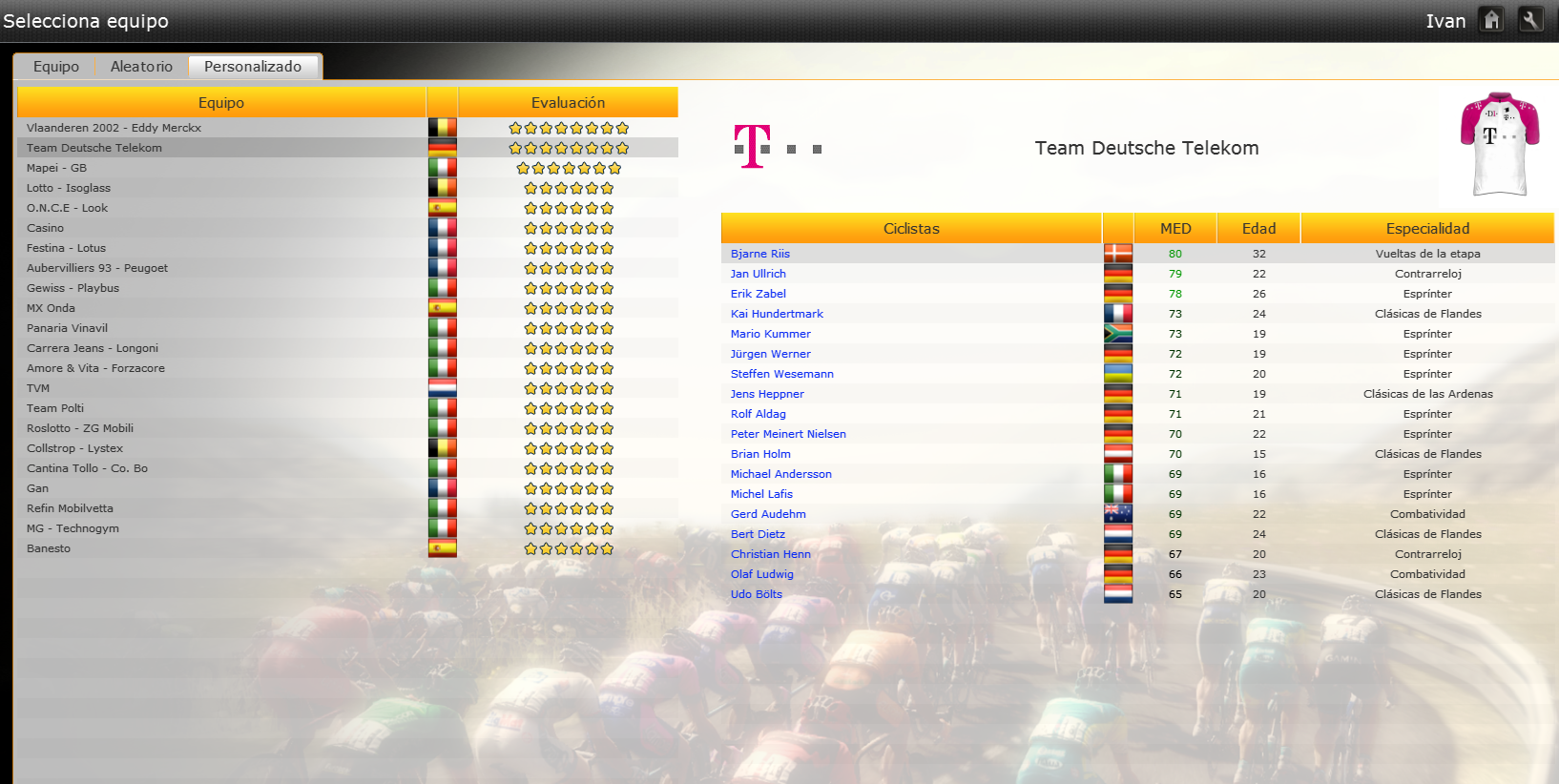 Looks good. But still don't think it's a good idea that the leaders have so low hill stats. 74 for Riis? He would lose a lot of time then. |