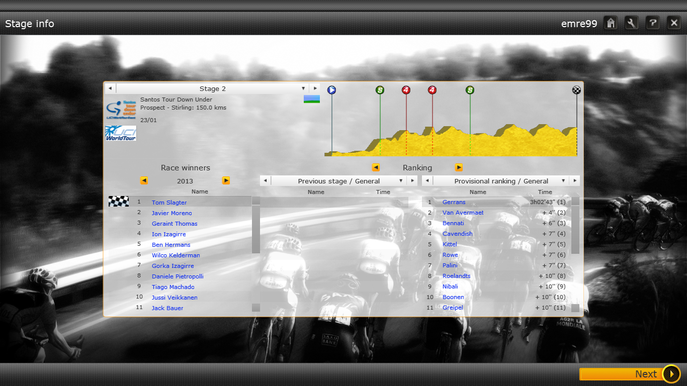 | Selwink | Other rider | | jseadog1 | Other rider | | Ste117 | Mark Cavendish | | Dippofix | Marcel Kittel | | Luis Leon Sanchez | Jose Joaquin Rojas | | Jakstar22 | Simon Gerrans | | welker3257 | Andre Greipel | | nacho63 | Matthew Goss | | The Hobbit | Andre Greipel | | baseballover312 | Daniel Martin | | The Rider Mark Cavendish | | Jaxika Mark Cavendish |