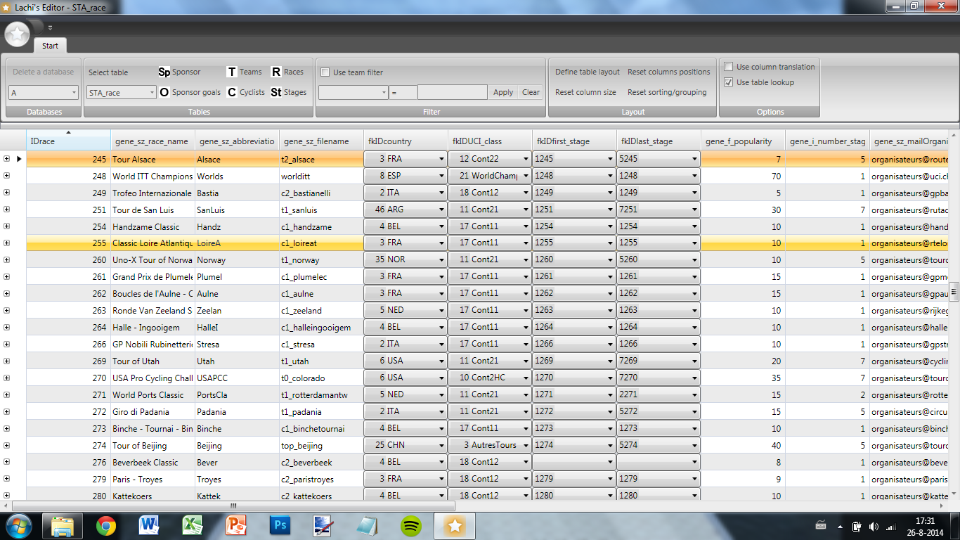 2/ In your editor, races table, at the Tour Alsace(245), at fkIDlastStage you put 5245