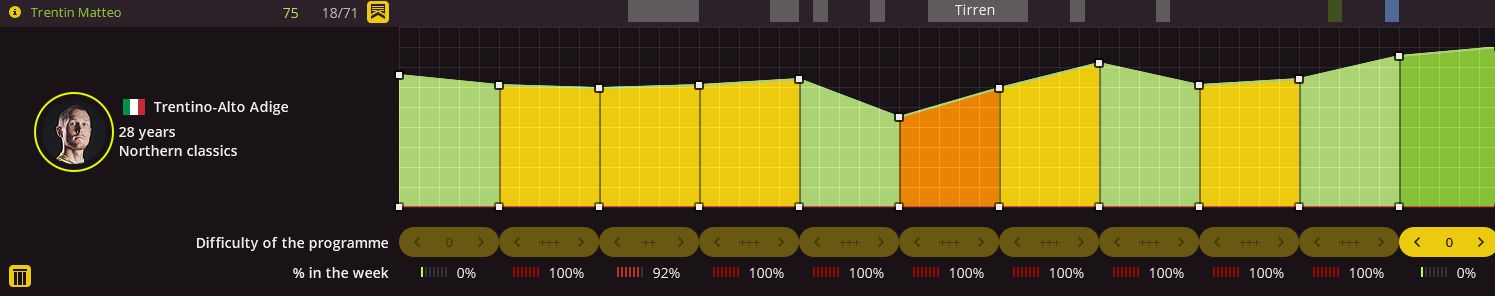 The same for me, most of my team mates who can help in Tours, arrived at Giro exhausted and were useless. This is almost game braking for the pro cyclist mode and i am guessing the AI teams have the same problem. How can the AI manage riders tirdeness so poorly... |