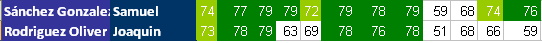 Samuel got an AVR of: 74,67, while Rodriguez has: 69,83