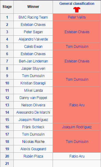 For Dumoulin, he was the Voeckler. Finally had enough. But looking back on this, he can be disappointed on how it happened, but can he be disappointed about the result? Top 5 GC and 2 stage wins is well beyond what he could have expected at the start.