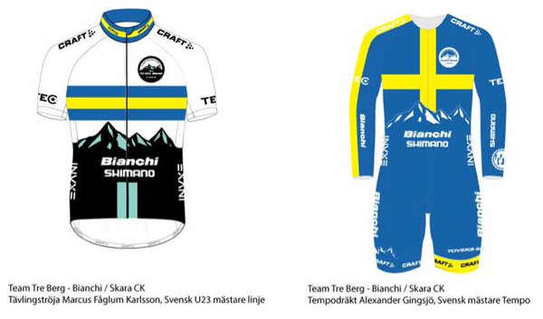 That's U23 champion to the left and TT champion to the right, so that's what Gingsjo had after winning ITT in 2014. The newer 2015 jersey was the previous one I posted, so they changed from Marcus Karlssons U23 jersey.