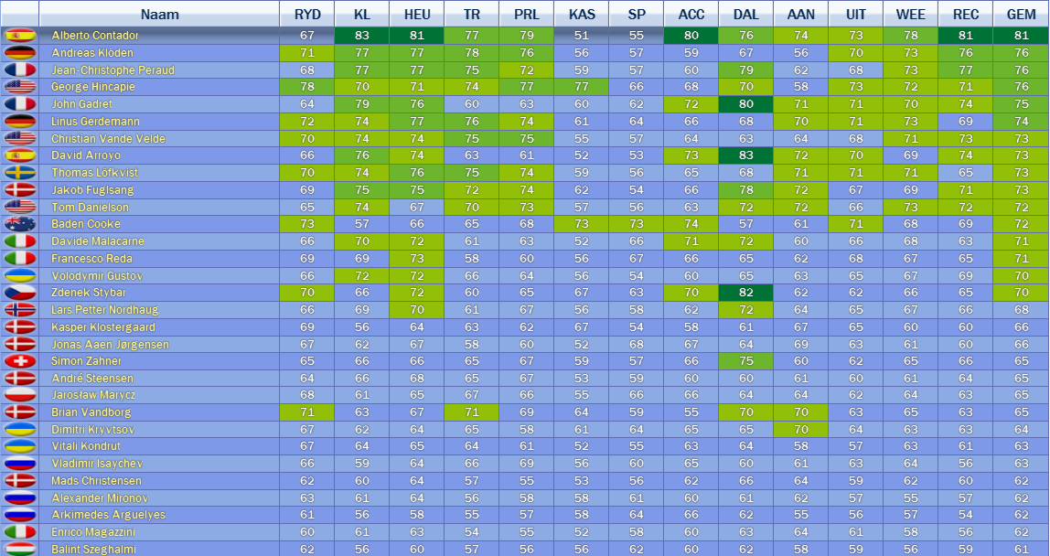 | Leader: | Pozzato | | Free: | Ivanov | | Free: | Kolobnev | | Free: | Paolini | | Helper: | Ignatiev | | Helper: | Brutt | | Helper: | Kuschynski | | Helper: | Horrach |